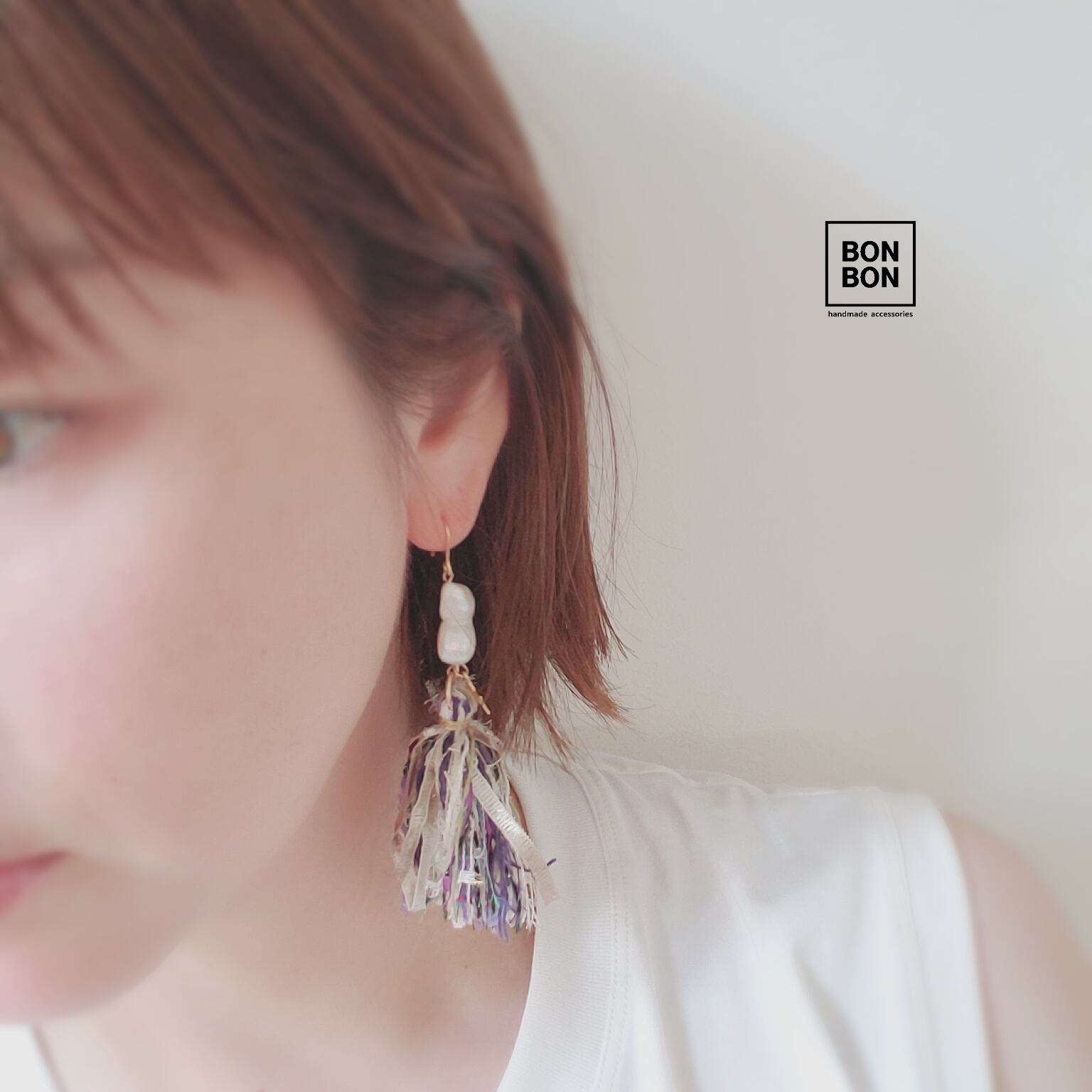 雪だるま型の淡水パールと紫ベースのタッセルを合わせてみました⛄♡